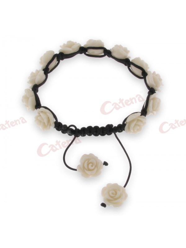 Βραχιόλι με δέσιμο κορδόνι και πέρλα σε σχήμα λευκό τριαντάφυλλο